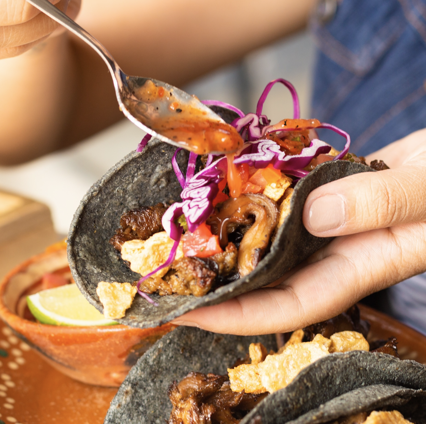 Aquí no solo se come rico: se come bonito, consciente y con sazón. Su menú está lleno de joyas como taquitos dorados de no pollo, sus tenders de zetas o su taquito baja... y postres un rico vegagancito que no le piden nada a los tradicionales. Todo está hecho con ingredientes frescos, muchos de ellos orgánicos, y con un toque casero que se nota desde el primer bocado. Tienen un menú por temporada y sus mocktails son ricos.